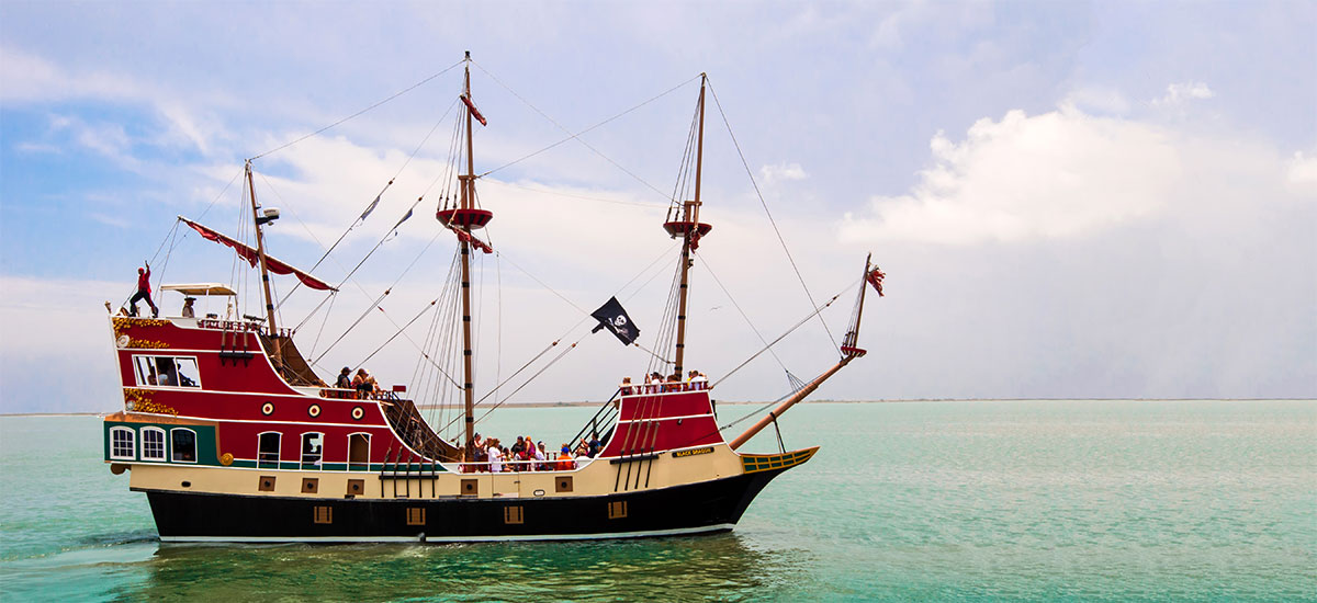 The Black Dragon is a modern day replica of an 17th Century Galleon. Below the water line, she is a modern sea worthy vessel with the latest marine technology, but above the water, she is a trip back into time, to a place where the likes of Jean Lafitte sailed the waters of the Gulf of Mexico and the Laguna Madre making port right here in Port Isabel. Legend has it that Lafitte took refuge in this area and dug a well in Laguna Vista. Local ranchers formed business alliances with pirates who sailed their contraband between the Rio Grande and Corpus Christi. Now you can sail the same waters with Black Dragon Cruises.