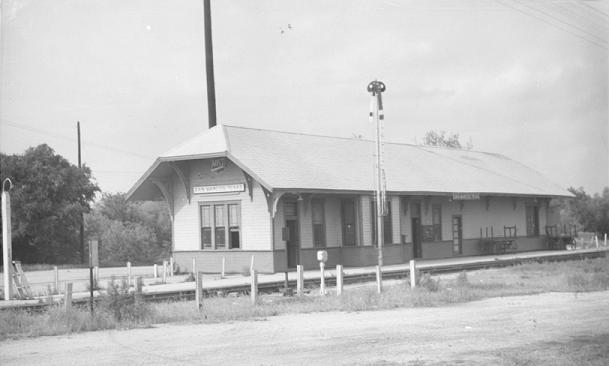 The Missouri, Kansas and Texas, nicknamed The Katy, built its own line from San Marcos to San Antonio in 1900. It had been using the I & GN's line from Taylor, north east of Austin since 1881. While the I & GN line heads directly south from Austin to San Marcos, the MKT's line comes from Lockhart, Smithville and, ultimately, Houston. The I & GN and the MKT were both owned by Jay Gould in 1881, and they were essentially the same company south of Taylor. Gould's control of the MK&T was broken in 1888 but he managed to retain the I & GN, despite the fact that it was legally leased to the MK&T. Trackage rights became a problem for a number of reasons, and the M-K-T decided to build its own line to San Antonio from San Marcos in 1900. In 1905, an agreement was reached that allowed the M-K-T to share the I & GN's line north from San Marcos and Austin, which allowed the M K & T to avoid building between the two cities. The Missouri-Kansas-Texas left the passenger business in 1964. At this point the depot became surplus to requirements. After some years of neglect, it was acquired by a local entrepreneur and moved a few blocks. It was restored and retains many of its original design features. At the time of writing in 2005, it is in use as a restaurant.